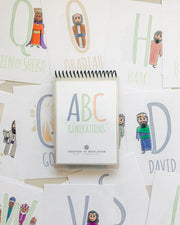 The new ABC: Generations set was designed to marry beautiful, simplistic art with the classic Generations characters. Even the tiniest tots will learn to recognize capital letters and learn the names of well-known (and some lesser-known) figures from scripture.