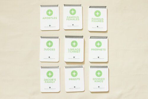 The Generation Spirals contain characters from the Generations illustrations with attached fact cards—these Spirals offer endless education and interest right at your fingertips. And don't worry, there's no prep necessary; children can flip through these synthetic paper, sturdy Spirals on their own and learn Bible names and details at any age!
