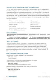 The ESV Verse-by-Verse Reference Bible contains the full ESV Bible text in a double-column format, displaying each verse on its own line. To improve ease of reading, verse numbers are bolded and indented and cross-references are located in the bottom corner of the page.
