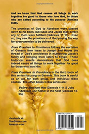 From Promises to Providence is the third book of this series focusing on Genesis. This book is useful as an aid for both group and individual Bible studies. The other books in this series are: Before Abraham Was (Genesis 1-11 & Job) and Abraham, Our Father in the Faith (Genesis 12-25).