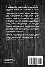 "Be diligent to present yourself approved to God as a workman who does not need to be ashamed, accurately handling the word of truth" (2 Timothy 2:15). The Bible claims to be the inspired message of God for all mankind (2 Timothy 3:16-17). This book, Handling Accurately the Word of Truth, presents evidence to support the Bible’s claim and to give the reader confidence in the Bible’s authenticity, reliability, translation, and relevance to life in every era and culture. This study also provides tools and information to assist Bible students with interpreting, understanding, and defending the Scriptures. It also gives guidance to avoid the errors that lead to misunderstanding and mistaken applications. Handling Accurately the Word of Truth is useful as an aid for both group and individual Bible studies and contains information that can be helpful for future reference.