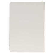 Sturdy white topstitching along the edges and seams boosts the journal's durability, while a lilac satin ribbon marker offers easy navigation through its contents. The white zipper, finished with a rose-gold metal zipper pull, ensures the pages and any loose notes inside stay secure and pristine.