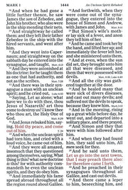 The KJV Super Giant Print Reference Bible is an excellent Bible for those who are challenged by impaired vision. The super giant print, in an easy-to-read 16-point type, will enable those with weak eyes to enjoy reading God's Word without interruption or frustration. Ideal suited for personal study or for use at church, Scripture is now accessible for anyone, anywhere; in the KJV Super Giant Print Reference Bible.