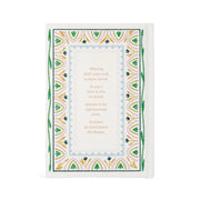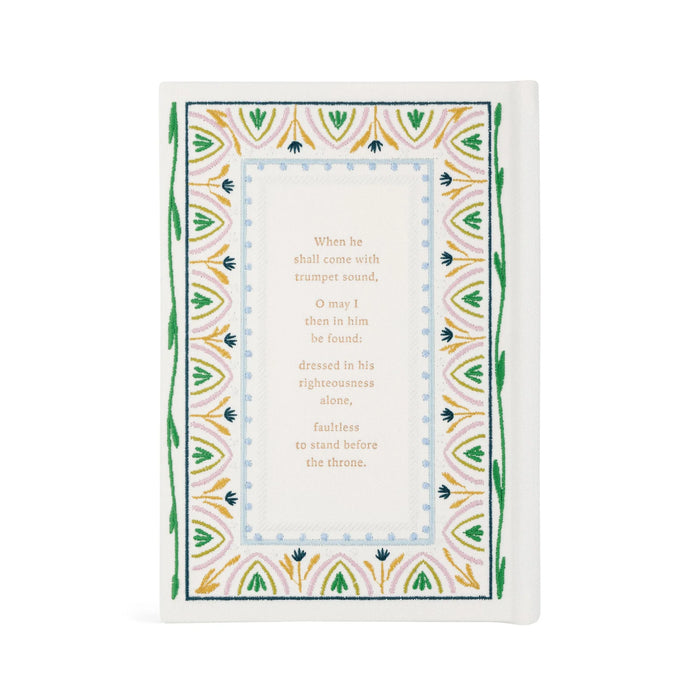 This beautiful notebook features a Lisbon design, based on the city in Portugal and inspired by the lively, colorful coastal port of Lisbon. An embroidered blue Cosmo flower elegantly adorns this notebook, while pink, green, and blue embroidery outlines the cover, each carefully-placed thread showcasing the Lord’s intentionality. The back of this notebook is graced with the hymn lyric, “On Christ the Solid Rock I Stand.” This is a reminder that life with Christ is solid and steadfast.
