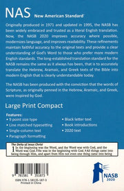 The NASB 2020 Large Print Compact Bible is an easily portable and reliable Bible that is easy to read with large print font.