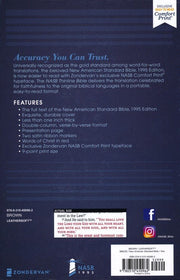The beloved 1995 Edition of the New American Standard Bible is now easier to read with Zondervan's exclusive NASB Comfort Print® typeface. This edition of the NASB Thinline Bibles is available in a variety of sophisticated designs in a portable, easy-to-read format..