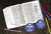 Girls will get creative through coloring and journaling in the NIV Beautiful Word™ Coloring Bible for Girls. Included are pencils to color, blend and shade the detailed line art surrounding hundreds of inspiring verses. This Bible gift set is perfect for the special young girl in your life and will become a cherished keepsake full of personalized creative expressions of faith.