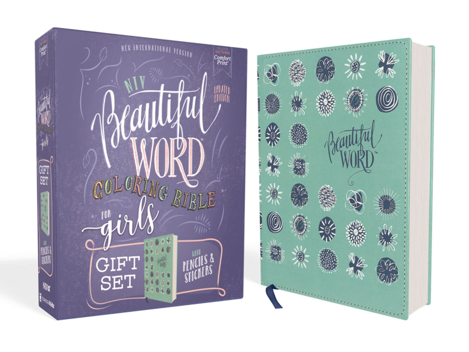 NIV Beautiful Word Coloring Bible Pencil/Sticker Gift set for Girls