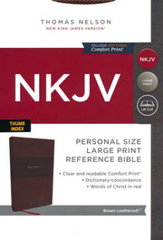 The NKJV Holy Bible Personal-Size Large-Print Reference Bible is a handy compact Bible that features a generous large print font for easier reading. Presented in the full text of the trustworthy New King James Version, the 10 point type is an easy-to-read size that is printed along with cross-references for easy biblical navigation.