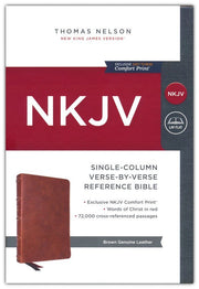 NKJV Single-Column Verse-by-Verse Ref Bible Brown Genuine Leather