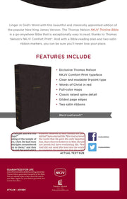 The NKJV Comfort Print Thinline Bible has been designed to enable you to comfortably carry and read God's Word no matter where you are. Featuring timeless details on the spine and a classic black leather-like cover, this Bible will compel you to open it's contents and fill your heart with the promises of God. Also featuring the Thomas Nelson Comfort Print, the 9 point text is presented in a tested print that is comfortable for reading. Dive into the custom reading plan and begin studying Scripture with the NKJV Comfort Print Thinline Bible.