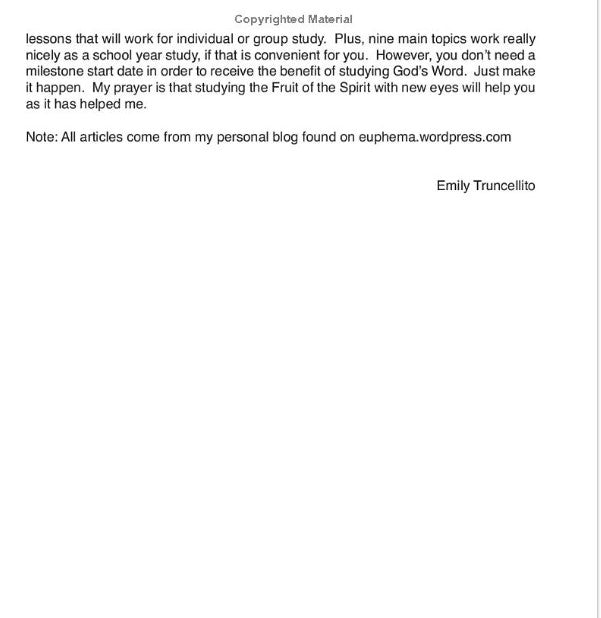 The Fruit of the Spirit found in Galatians 5:22-23 represents more than a checklist of good qualities; it represents the attitude shown by a disciple of Jesus. This study is designed for those who want to deepen their understanding and walk closer with God. Each section has verses of the day on which to mediate and weekly lessons that will work for individual or group study.